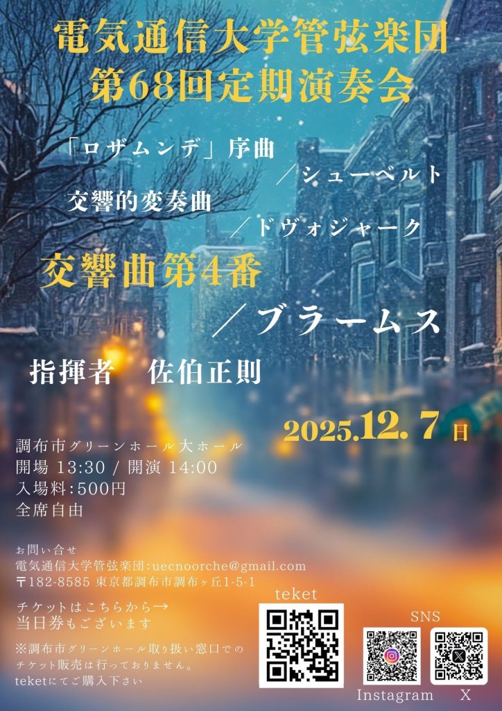 | 2025.12.07(日) | 第68回 定期演奏会 会場: 調布市グリーンホール 大ホール、開演: 14:00 |